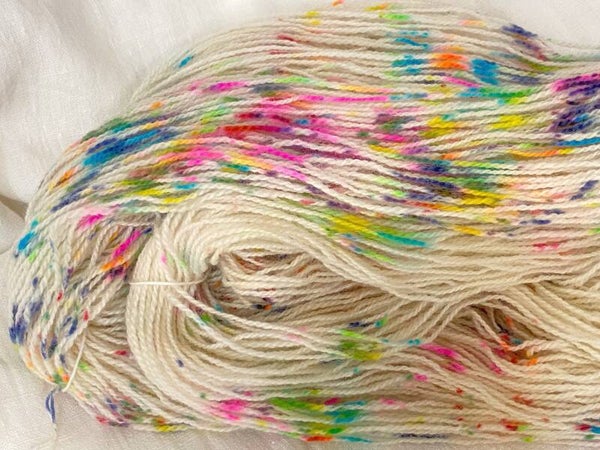 50 gram spettet garn i fargen "Tutti i Frutti" - som vil si "så å si alle farger"🌈