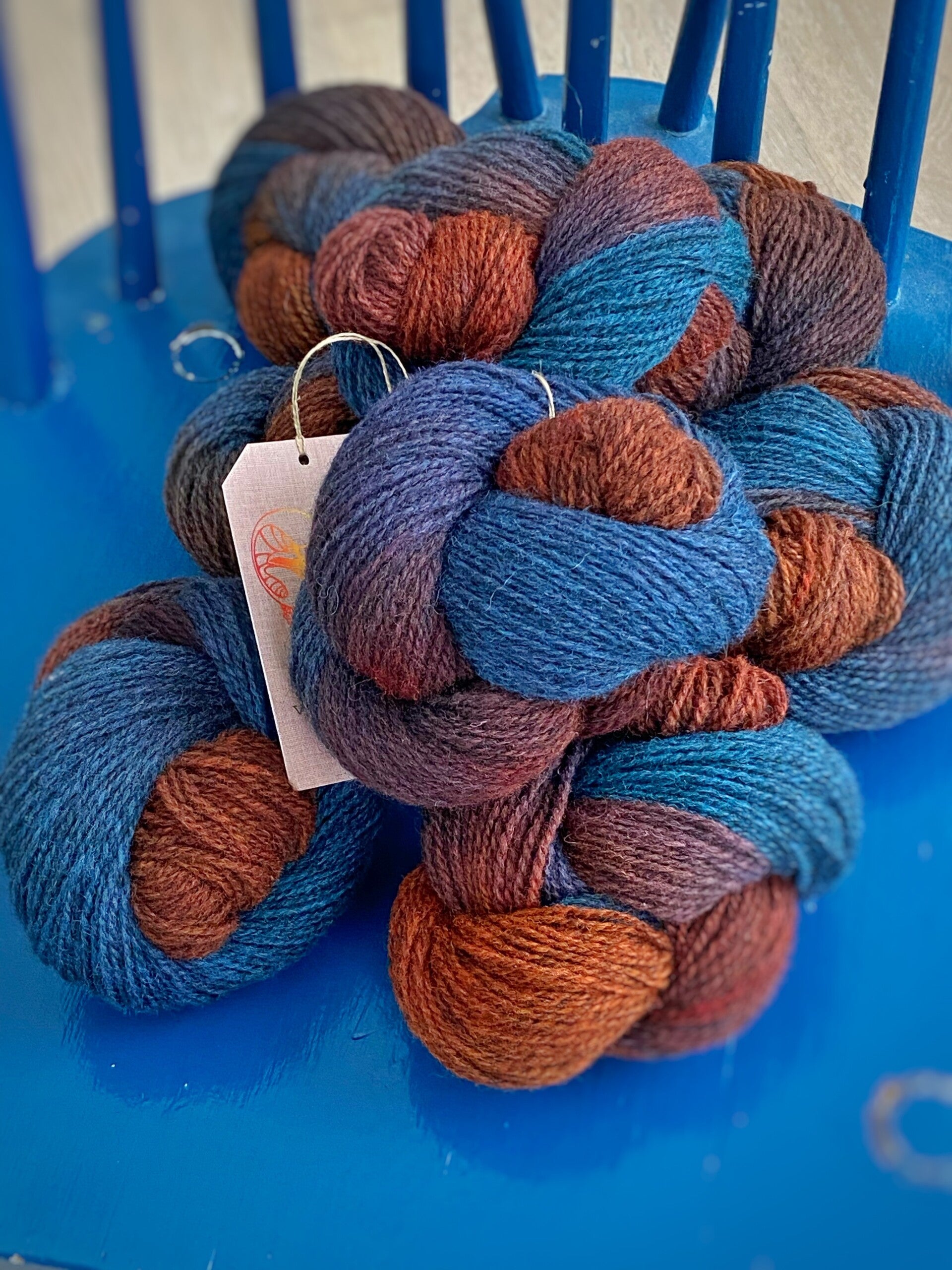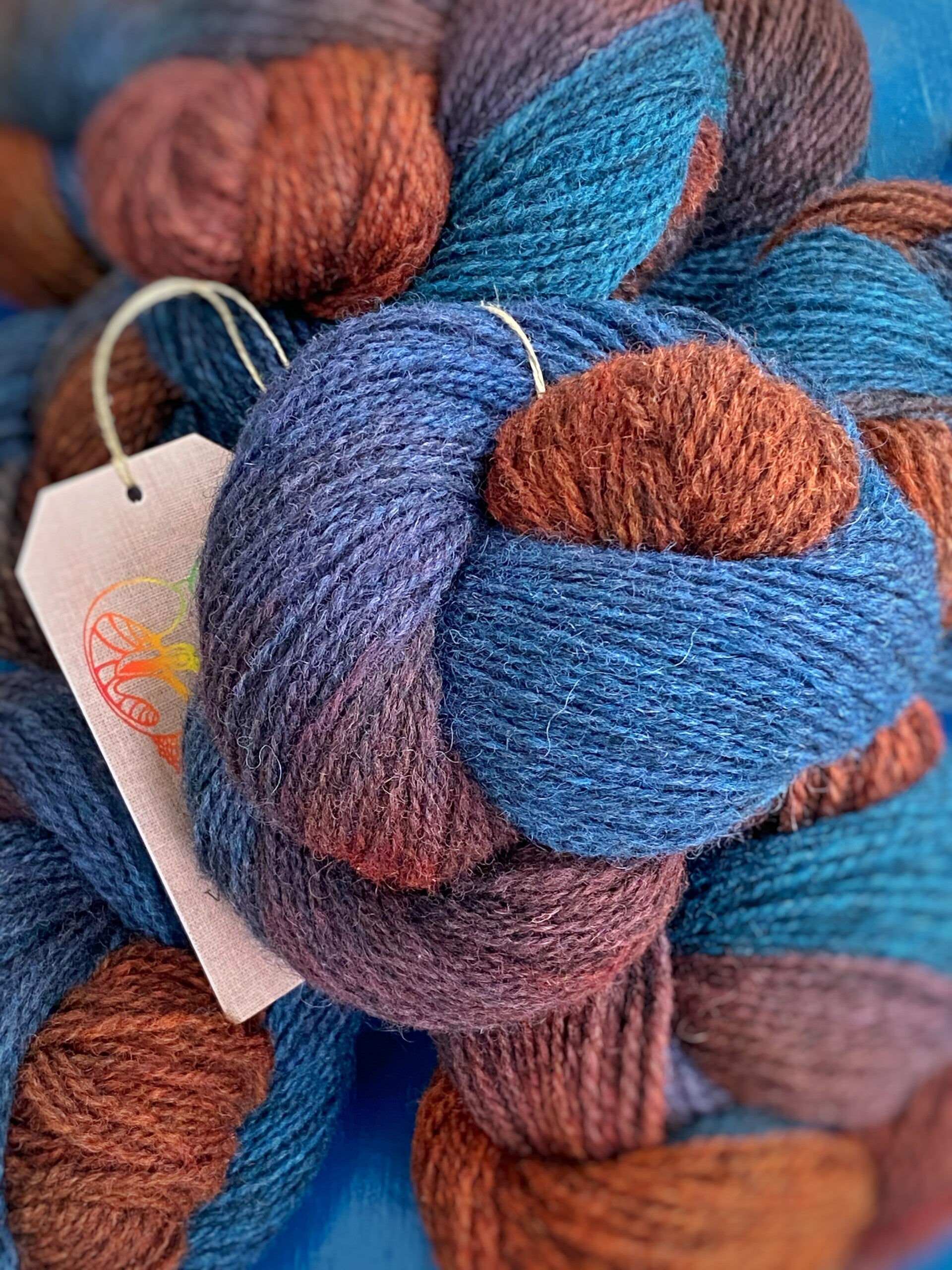 Orange og blå-turkis på deilig sauegrått garn gjør i alle fall meg varm om hjertet 🧶❤️